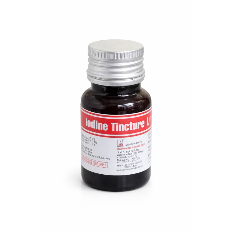 Iodine Tincture is a topical antiseptic solution containing elemental iodine dissolved in alcohol. It is widely used for disinfecting minor cuts, wounds, abrasions, and skin infections. The solution has strong antimicrobial properties and helps prevent bacterial contamination in minor injuries. It comes in an amber glass bottle to protect the contents from light degradation.