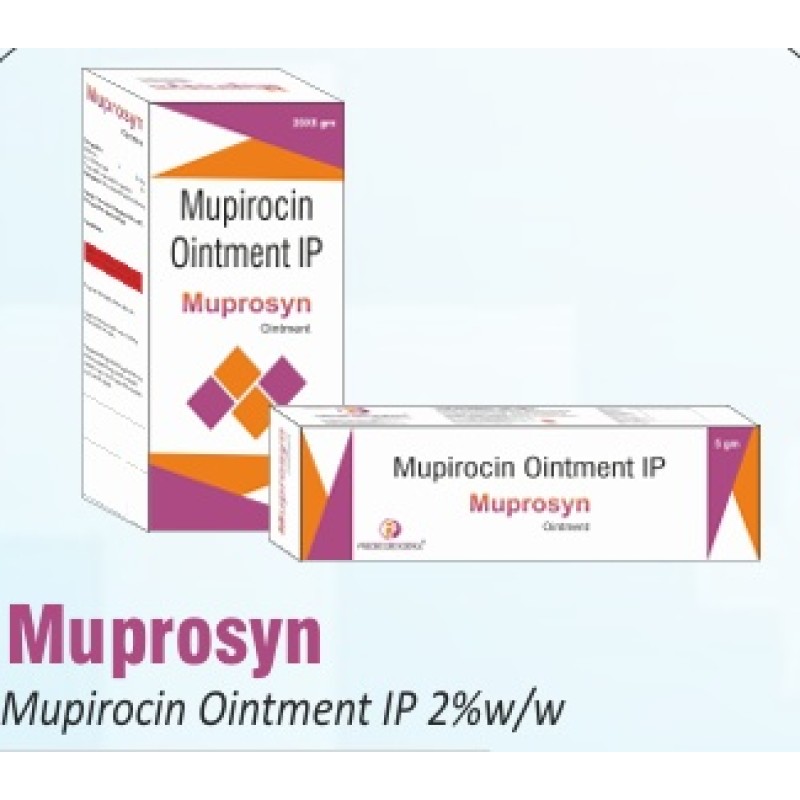 (Mupirocin  gel IP 2% w/w) is a topical antibiotic used for the treatment of bacterial skin infections. It is effective against Gram-positive bacteria, especially Staphylococcus aureus and Streptococcus species.